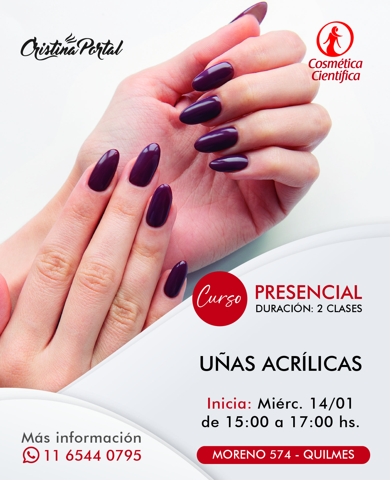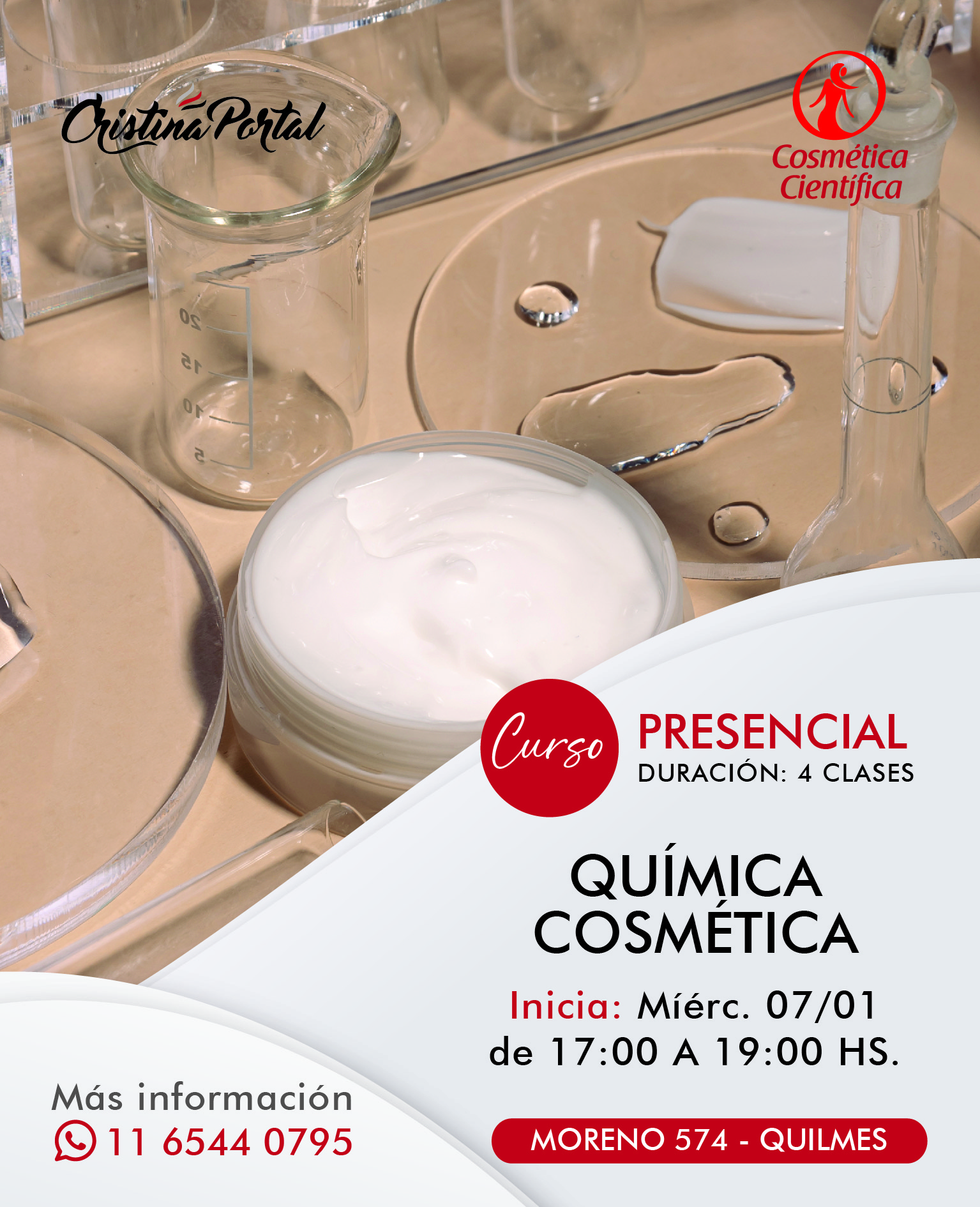 Cristina Portal es una cosmiatra y cosmetóloga con más de 40 años de experiencia. En su centro de estética en Quilmes, ofrece tratamientos de alta calidad y cursos especializados. Su enfoque profesional y cálido busca realzar la belleza y el bienestar de cada cliente.